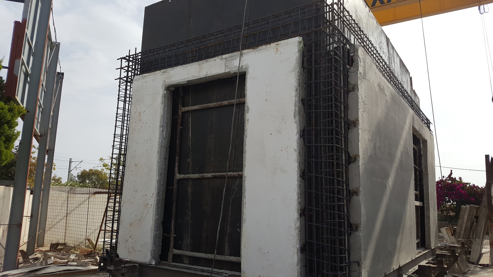 This particular two-story house was built exclusively by the method of prefabricated cells. First was constructed the basement of 82.89sqm with conventional method. Then we placed the cells, which came on tracks from Megara.