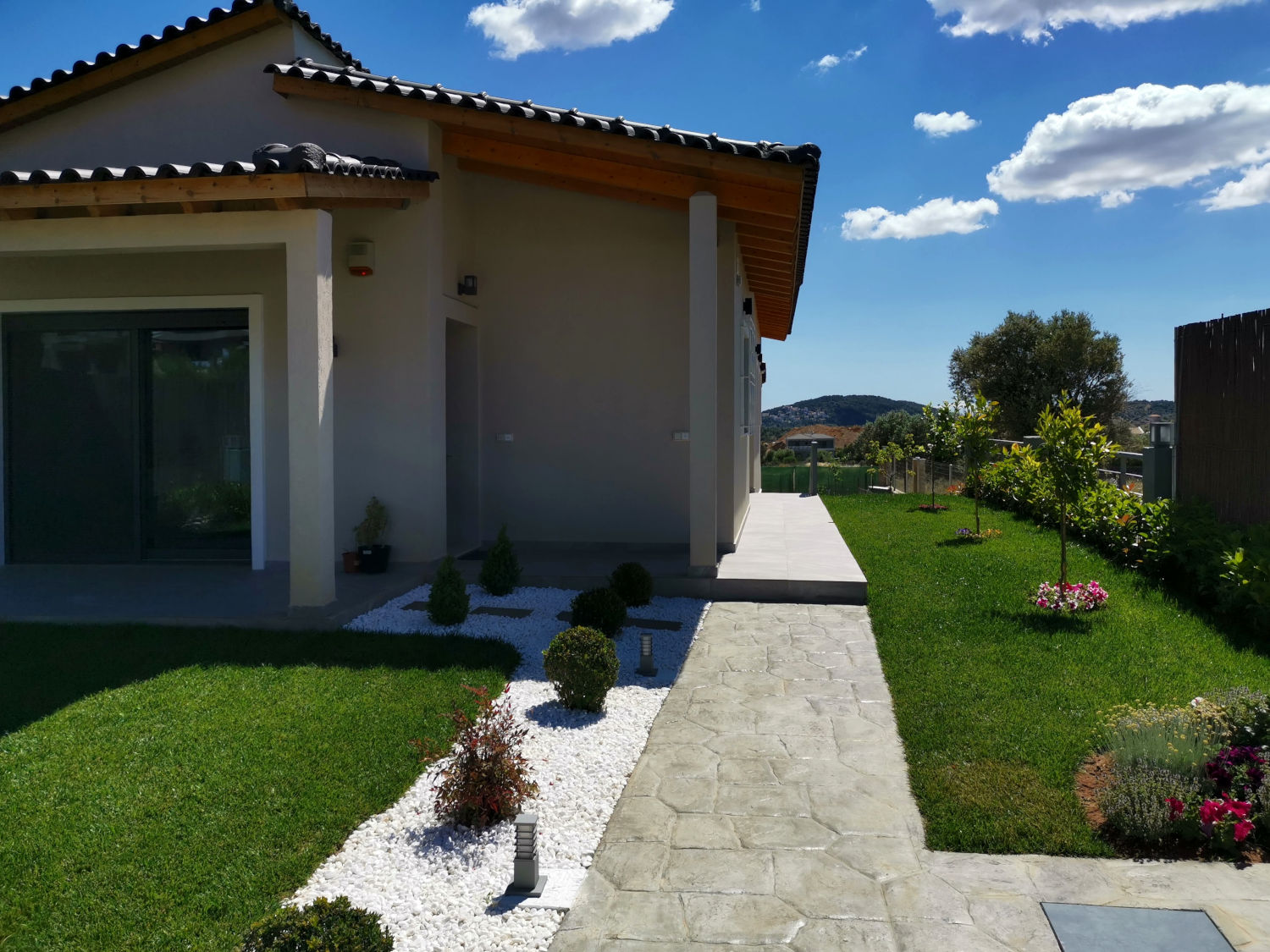 Ισόγεια προκατασκευασμένη κατοικία με υπόγειο στην Παιανία. Το σπίτι κατασκευάστηκε με συνδυασμό προκατασκευασμένων κυψελών και μεταφερόμενων τοιχίων. Στο κτήριο τοποθετήθηκε ξύλινη εμφανή σκεπή και έχει δυνατότητα προσθήκης δεύτερου ορόφου.