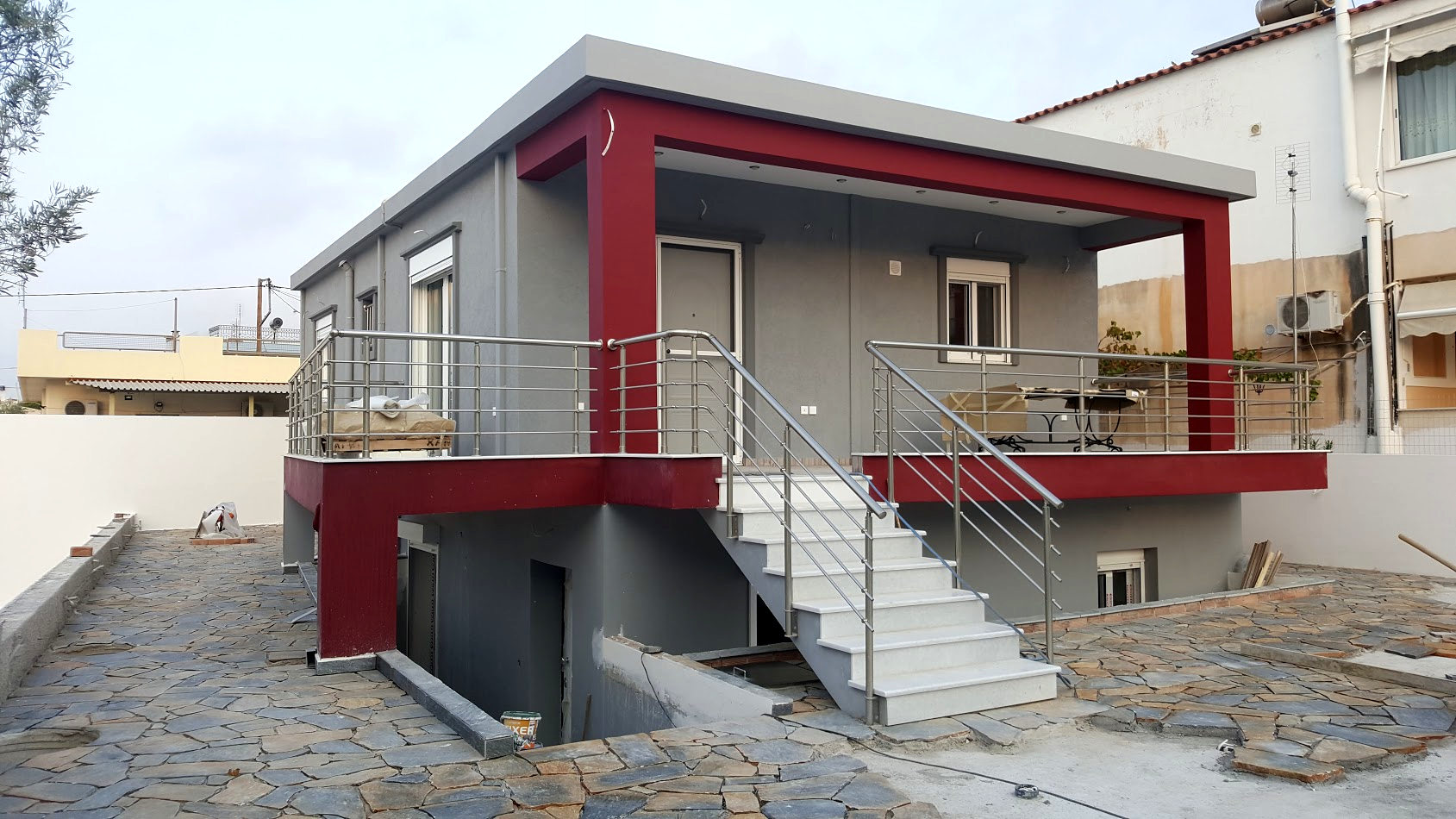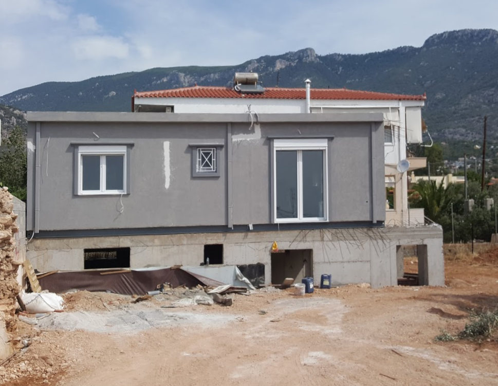 Η κατοικία έχει κατασκευαστεί με κολώνες, δοκάρια και πλακάκια στην οροφή με προδιαγραφές μελλοντικής προσθηκης ορόφου.